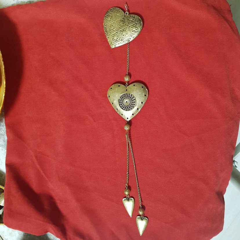 Nakışlı kalp desenleri ve zincir detaylarıyla vintage bohem tarzını yansıtan altın renkli kadın charm, romantik akşamlar için uygun.