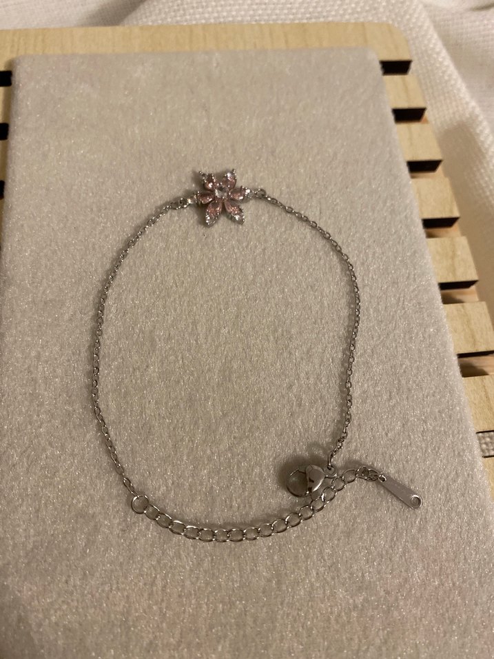 Nakışlı pastel çiçek detaylı, zincirli bej kadın bilekliği, gündelik şık sokak tarzına uygun.