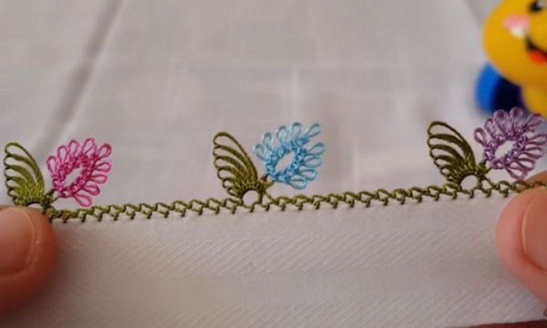 Nakışlı mavi çiçek desenleri ve zincir detayları bulunan, bohem ve vintage tarzda kadın el zinciri. Hafif renk ve retro havasıyla günlük kullanıma uygundur.