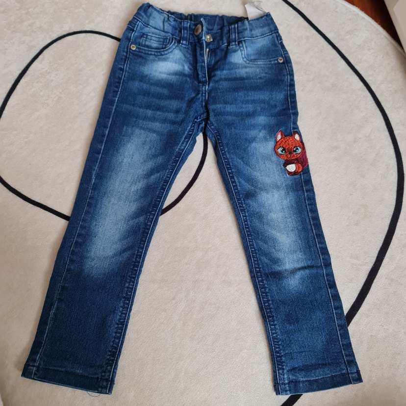 Mavi kot kumaştan, nakış detaylı, normal kesim kız pantolonu. Günlük sokak stili için uygun.