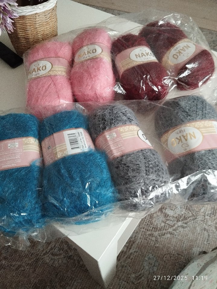 Pembe, kırmızı, mavi ve gri tonlarda Nako marka bohem stilinde renkli el örgü iplikleri. Yumuşak dokulu, el işi projeleri için uygun. tanesi 100 tl
