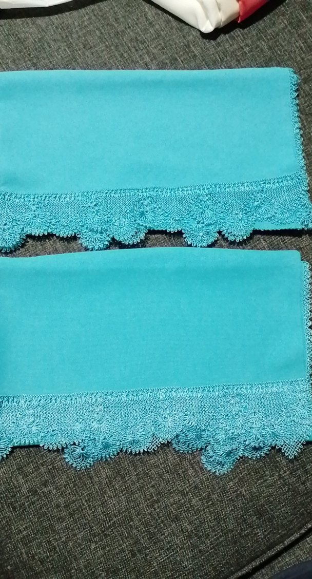 Turkuaz renkte, namaz başörtüsü iki adet çeyizlik iğne oyası