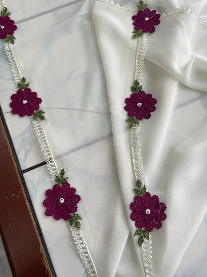 Namaz başörtüsü krep Bordo Çiçekli Bohem Triko Saç Aksesuarı