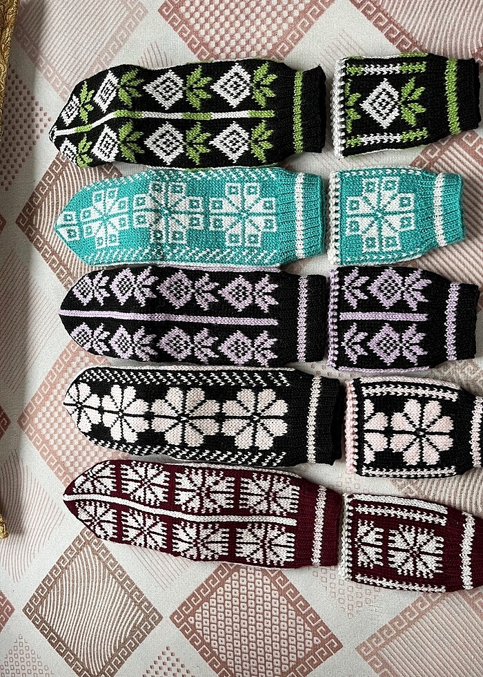 El yapımı desenli renkli namazlık çorap çeyizlere birebir