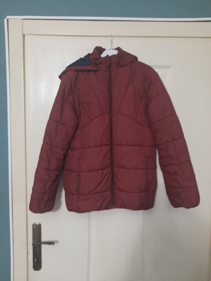 14 yaş uyumludur.bir sezon başka mont ile dönüşümlü kullanıldı.sorunsuzdur.koyu bordoya kaçan kiremit renktir.iki koltuk altı arası 53 cm.boy 68 cm.omuz ucundan kol 61 cm dir.Kapşonu çıt çıtlı çıkarılabilir.