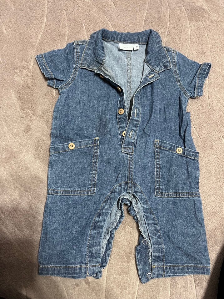 Unisex kısa kollu, düğmeli ve cep detaylı fitted jean tulum. Mavi tonlarında, streetwear tarzında.