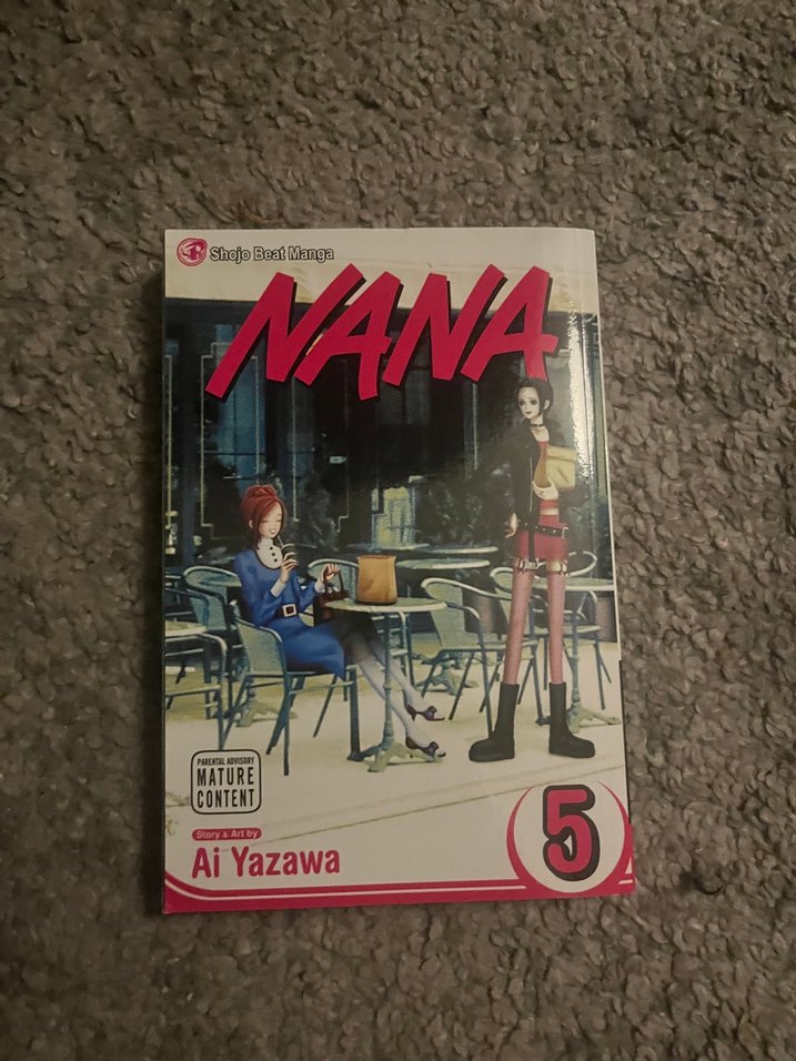 Ai Yazawa'nın Nana manga serisinin 5. cildi, olgun içerik etiketiyle. Kapakta kafe ortamında iki karakter yer alıyor.