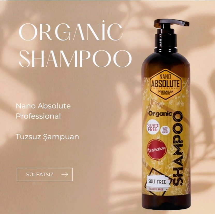 Nano Absolute Organik şampuan, tuzsuz formülüyle nazik temizlik ve saç bakımı sağlar. Premium, sülfatsız ve saç dökülmesine karşıdır.