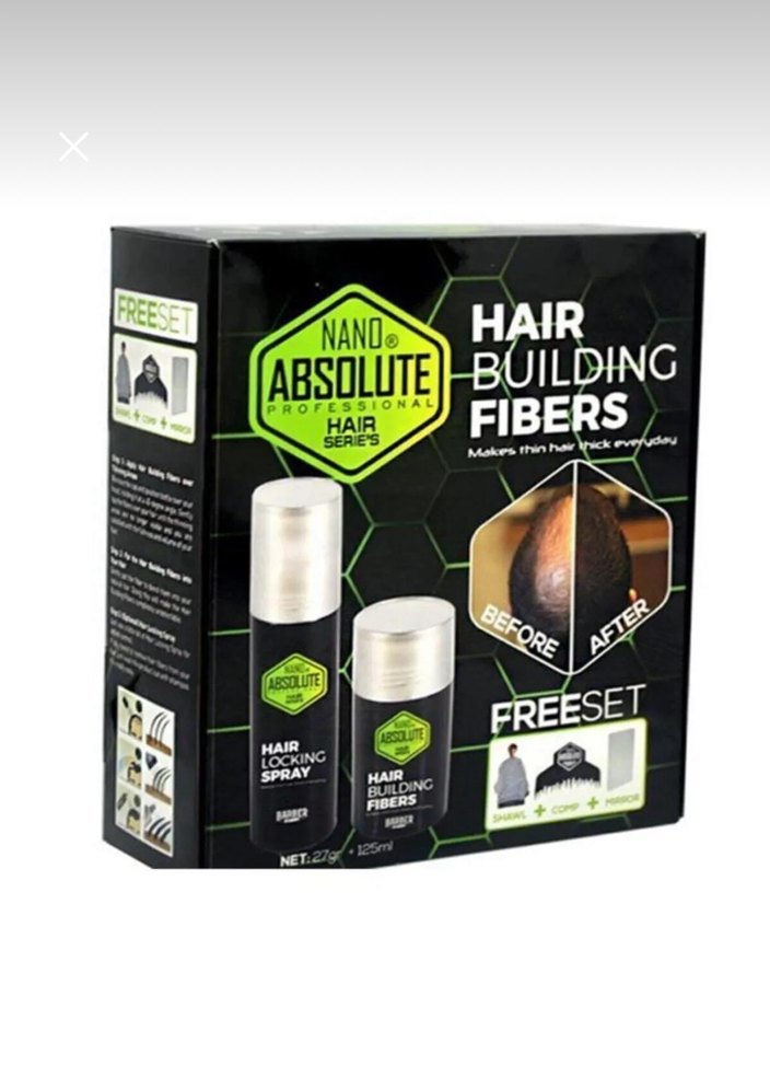 Nano Absolute Saç Dolgunlaştırıcı Fiber seti, ince saçları daha dolgun gösteren saç tutucu sprey ve saç fiberleri içerir. Günlük kullanım için uygundur. ♂️