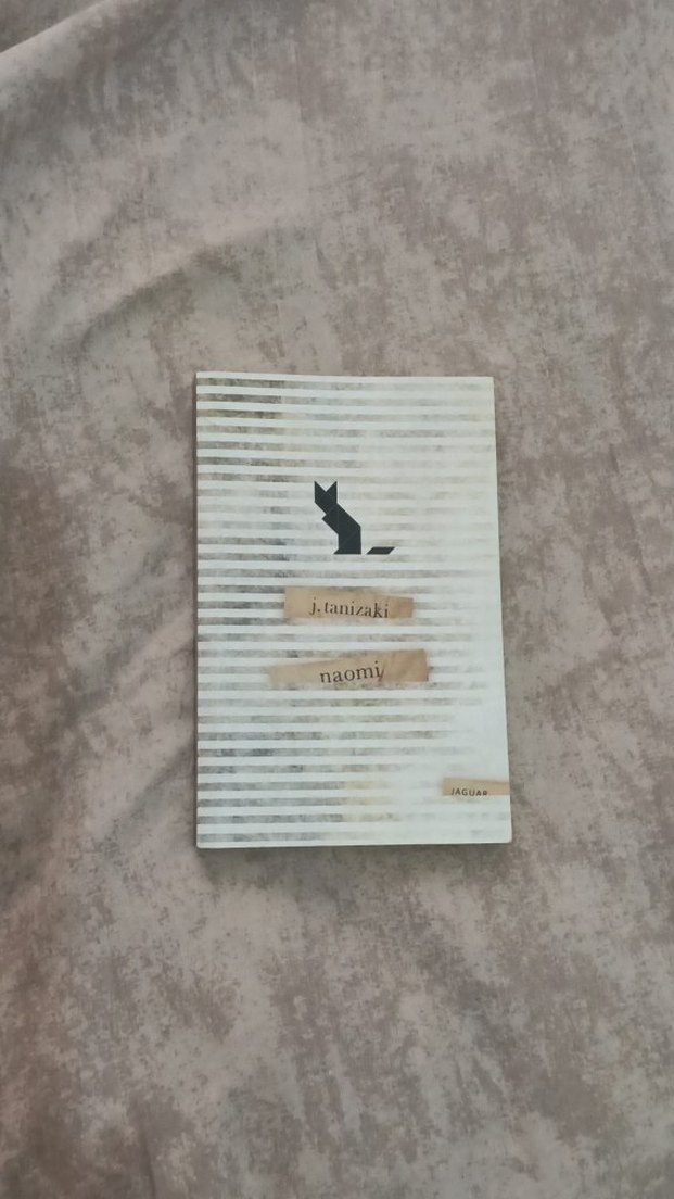 Naomiy, J. Tanizaki tarafından yazılmış, yatay çizgiler ve küçük bir grafik içeren sade kapak tasarımına sahip bir okuma kitabıdır.