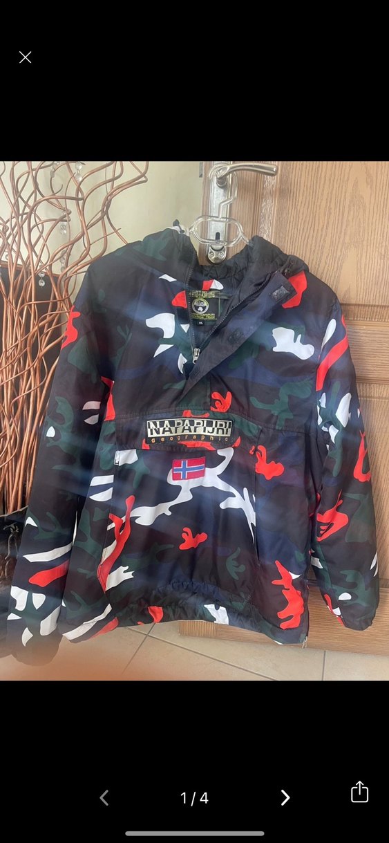 Napapijri markalı, kapüşonlu ve uzun kollu, çok renkli koyu kamuflaj desenli erkek yağmurluğu. Rahat kesim ve fermuarlı detaylar içerir. ️