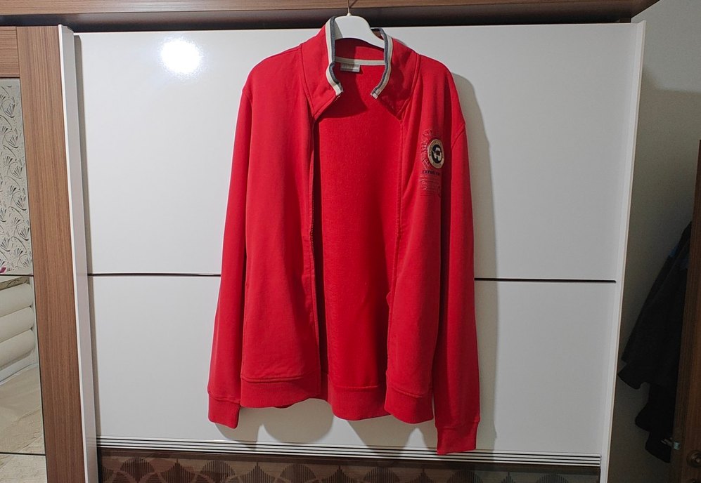 Uzun kollu, yuvarlak yakalı ve fermuarlı kırmızı erkek sweatshirt. Rahat kesimi ve yumuşak dokusuyla spor ve günlük kullanıma uygundur. ♂️ ölçüler iki kol altı arası 55 cm boy 72 cm