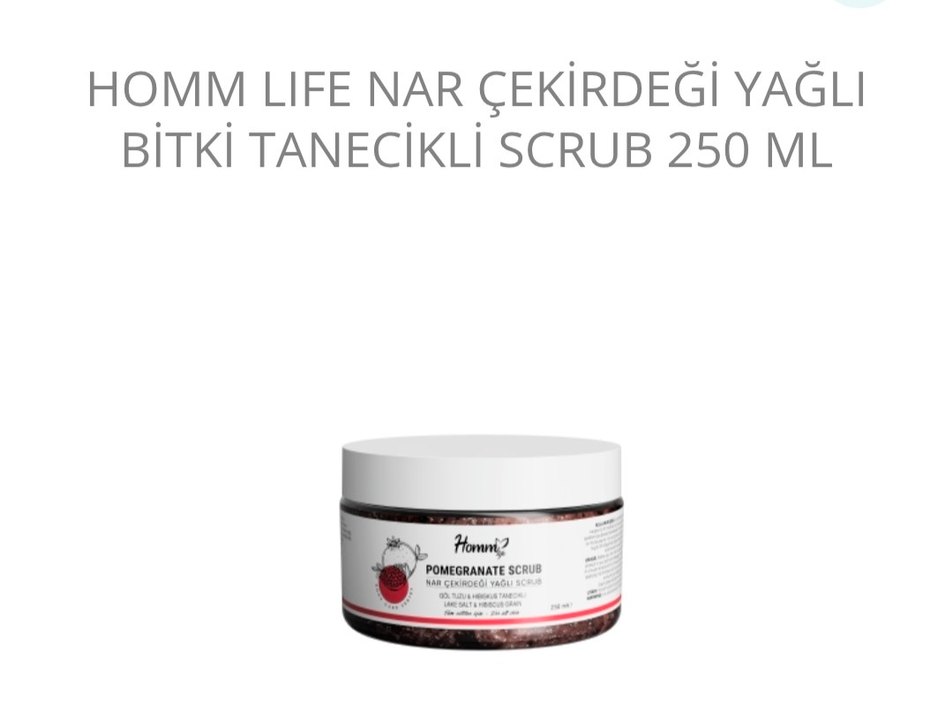 Nar çekirdeği yağı içeren, cildi nazikçe peeling yapan 250 ml'lik tanecikli scrub ürünü.