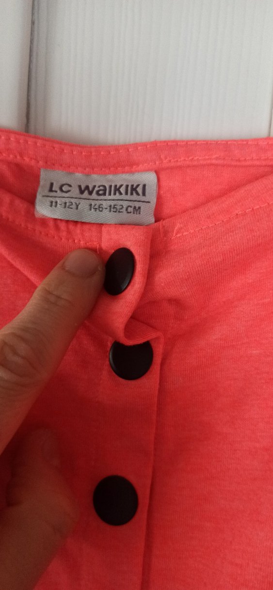 Kırmızı renkte, üst kısım çıtçıtlı kız cocuk askılı elbise. LC Waikiki, 11-12 yaş