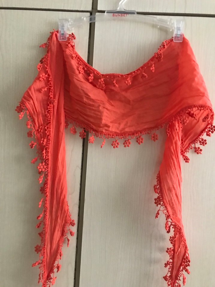 Canlı nar çiçeği renkte, zarif süslemeli ve dökümlü tasarıma sahip kadın şalı. Yumuşak sentetik kumaştan üretilmiştir, bohem ve retro tarzlara uygundur.