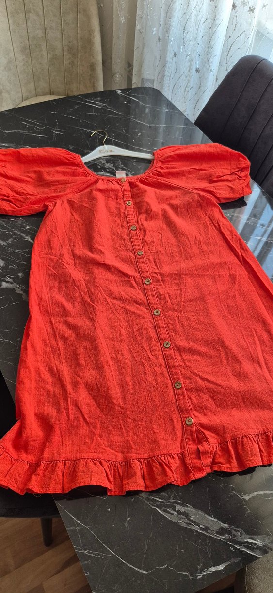 nar cicegi midi keten elbise, düğmeli ve kısa kolludur. Salaş kesimi ve tekne yaka detayı ile günlük kullanıma uygundur. Bohem tarzda şık bir seçenektir.