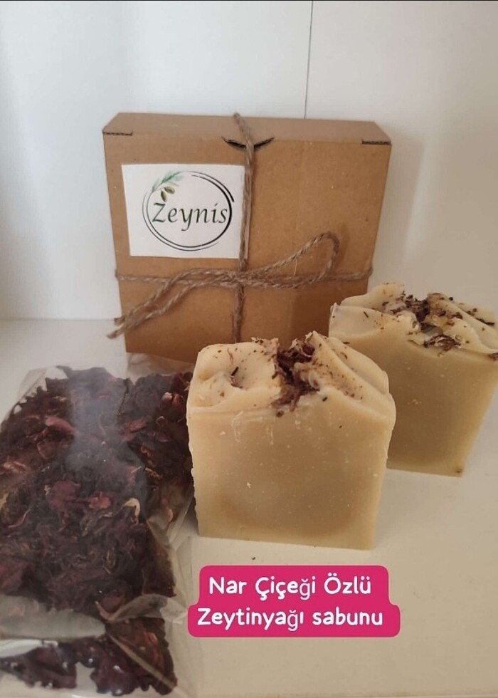 İçinde yüksek kaliteli zeytinyağı, Hindistan Cevizi yağı,Hint yağı, hurma yağı, hurma çekirdeği yağı, Shea yağı, nar çiçeği (hibiskus) özü bulunur. Ürünlerimiz tamamen el yapımı ve tamamen doğal olup kullanılan tüm ürünler çok yüksek kalitededir. SOĞUK YÖNTEM sabunudur. Bu nedenle içeriği zengin olup etkisi hızlı olacaktır. #nar çiçeği sabunumuz cildi hem temizler, hem de besler. Ciltteki lekelerin giderilmesinde etkilidir. #Ciltteki siyah nokta ve aknenin giderilmesinde etkilidir. #Duzenli kullanımı halinde KEPEK OLUŞUMUNU ve SAÇ DÖKÜLMESİNİ yavaşlatarak durdurur. Piyasa koşullarına göre çok daha fazla zengin içeriklidir. #nar çiçeği #hibiskus #sabun #doğal #banyo #vücut #cilt
