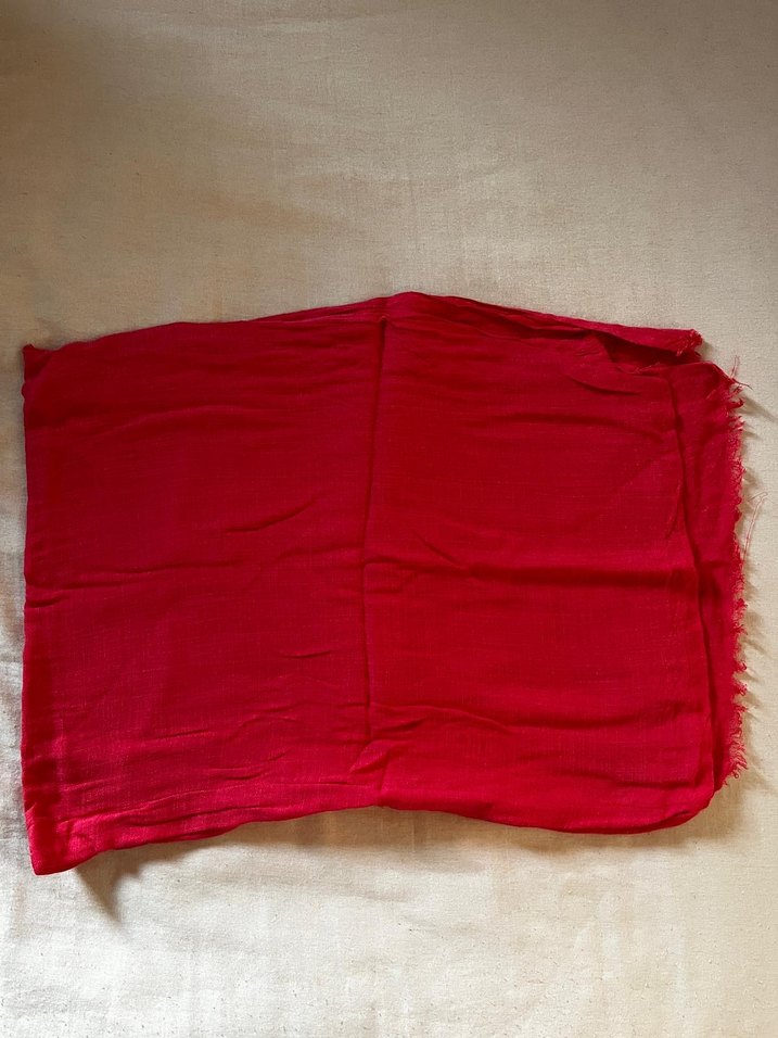 Nar çiçeği renkte, drapeli tasarıma sahip sade ve bohem tarzda kadın şalı.