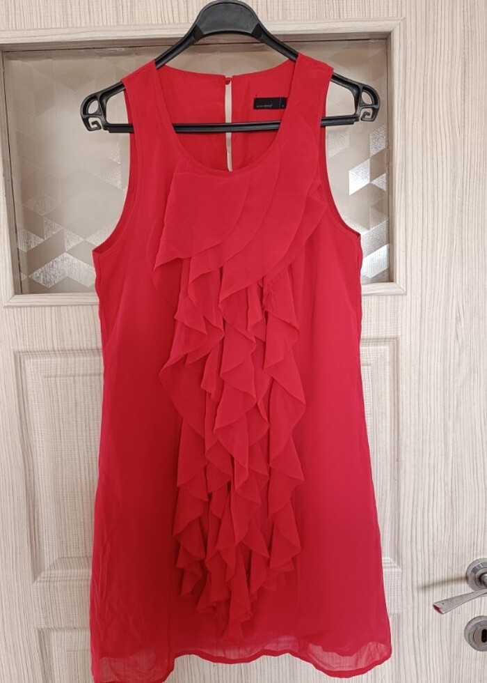 Nar çiçeği mini abiye M beden önündeki fırfırinda hafif belli olmayacak sekilde sökülme benzeri bir yıpranma var