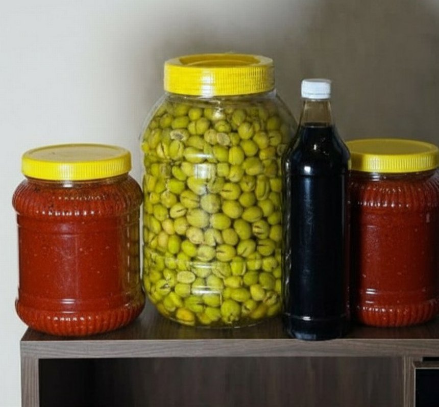 Kesinlikle hiçbir üründe herhangi bir katkı maddesi bulunmamaktadır Tamamen doğal olarak yapılmıştır. 2 kg tatlı biber salçası 5 kg kırma yeşil zeytin 1 kg el yapımı nar ekşisi 2 kg acı biber salçası