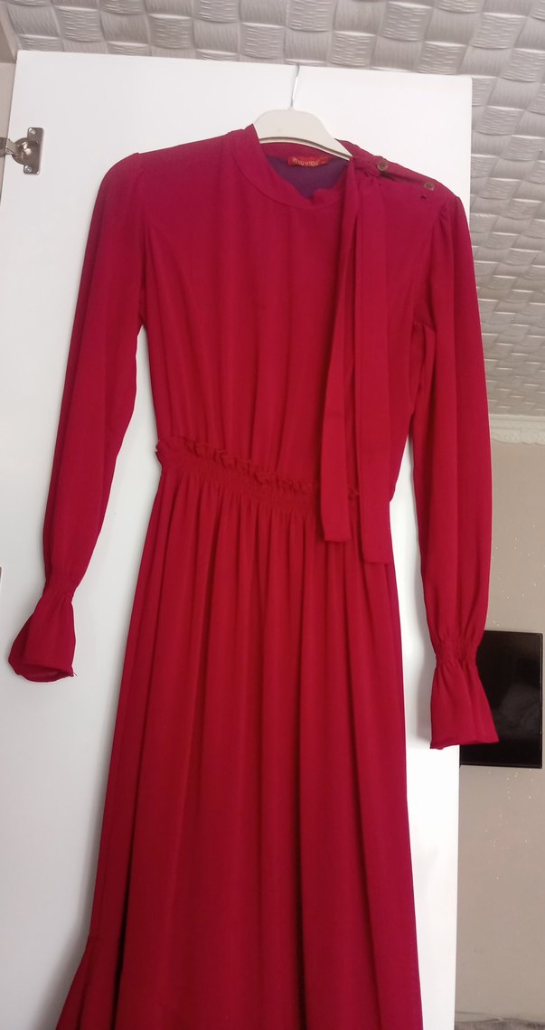 nar Kırmızı Uzun Kollu Pilili Kadın Elbise