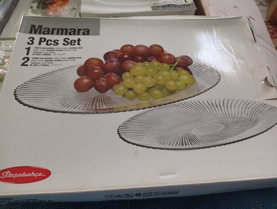 Nara setine ait beyaz oval cam tabaklar, desen içermeyen sade ve şık tasarım. Çeşitli yemekler için uygundur. ️