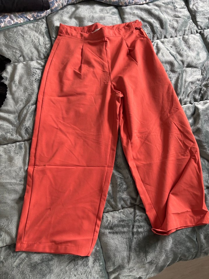 Narçiçeği midi uzunlukta, bol kesim ve pileli ön detaylı, yumuşak sentetik kumaştan yapılmış rahat kumaş pantolon.