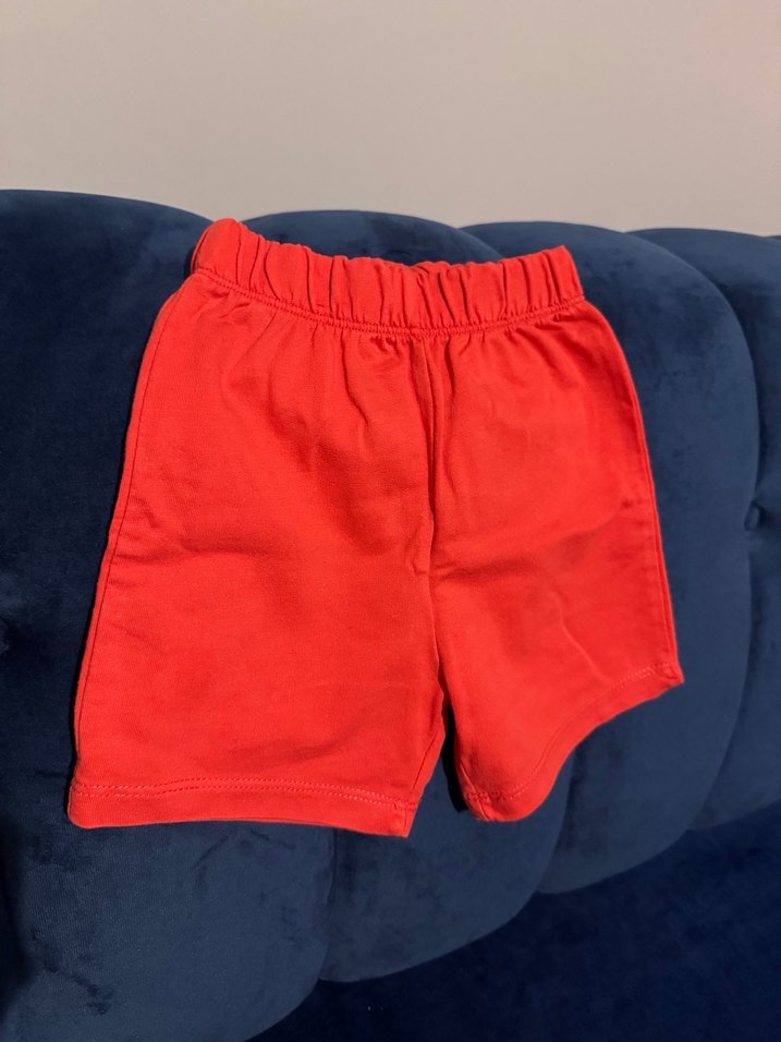 Yumuşak ve sıcak kumaştan, elastik bel bantlı, düz tasarımlı kırmızı erkek çocuk şortu. Rahat sokak stili için uygundur.