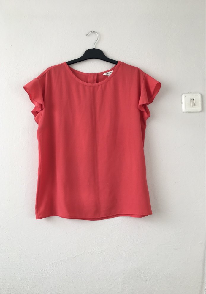 Narçiçeği renkte, kısa kollu ve yuvarlak yakalı, sentetik kumaştan yapılmış bol kesim bluz. Minimalist ve rahat tarzıyla günlük sokak giyimine uygundur.