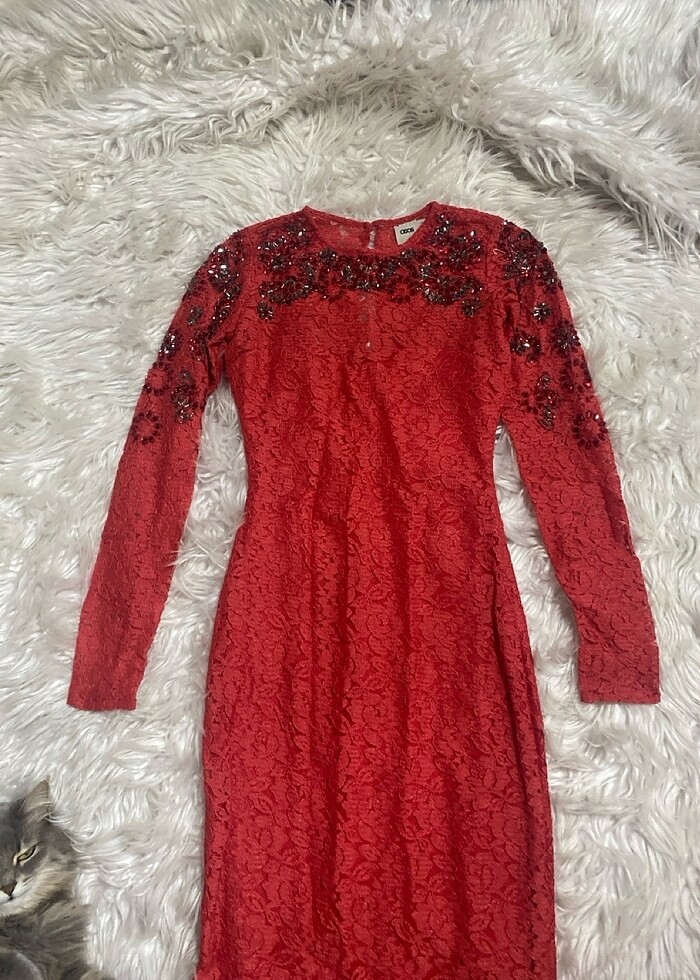 Narçiçeği tel detaylı şık zarif gece elbisesi
