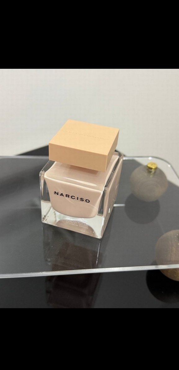 Kare cam şişede, bej kapaklı Narciso kadın parfümü, zarif bir koku sunar.