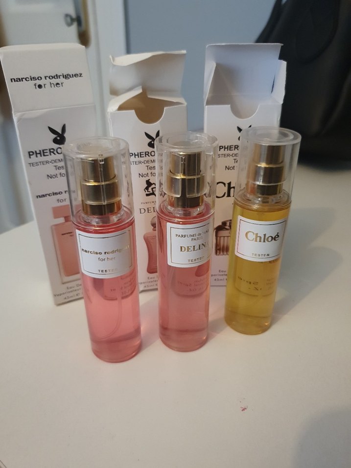 Narciso Rodriguez, Delina ve Chloé markalarından üç kadın parfümü, sprey şişelerde ve tester kutularında sunuluyor. 3 ürün fiyatı