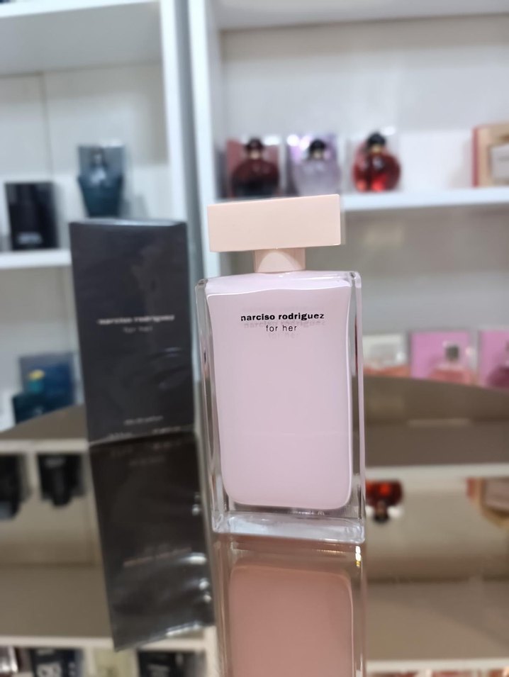 Narciso Rodriguez For Her, şık ve açık pembe şişede, kadınlar için zarif ve sofistike bir koku sunar.