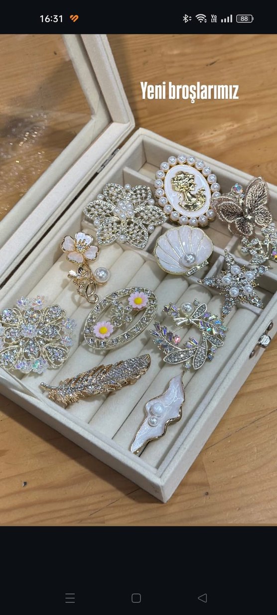 Nakışlı ve payet detaylı, vintage ve bohem tarzda beyaz narin broş seti, düğün aksesuarı için uygun.