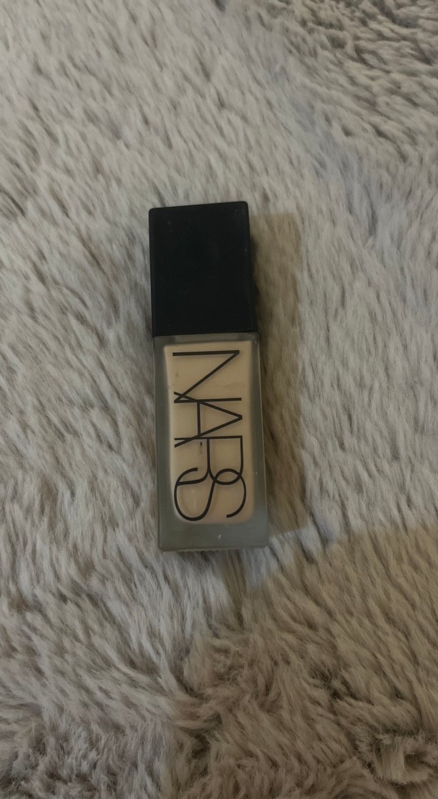 NARS markalı, mat şişede siyah kapaklı bej tonunda fondöten. Pürüzsüz kapatıcılık sağlar.