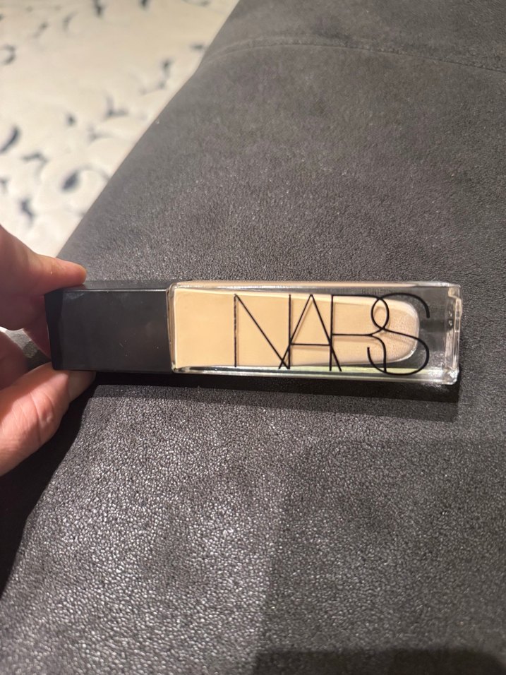 NARS markalı, koyu bej tonunda, pürüzsüz ve kremamsı dokulu fondöten. Şeffaf şişede ürün görünür.