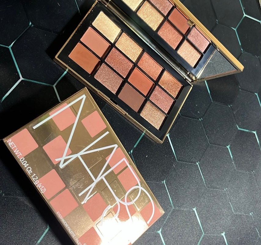 NARS far paleti, mat ve ışıltılı bitişlere sahip koyu bej ve sıcak tonlarda çeşitli renkler sunar.
