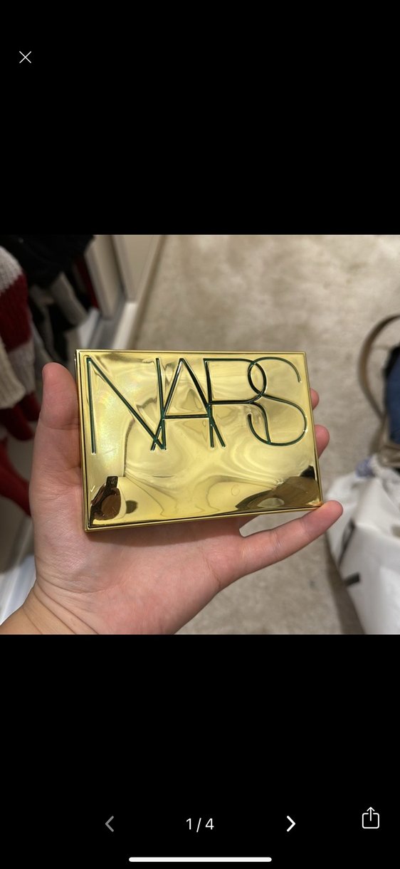 NARS allık, parlak altın kutusunda ve kapağında marka logosu ile sunulur. Yanaklar için canlı ve ışıltılı bir görünüm sağlar.