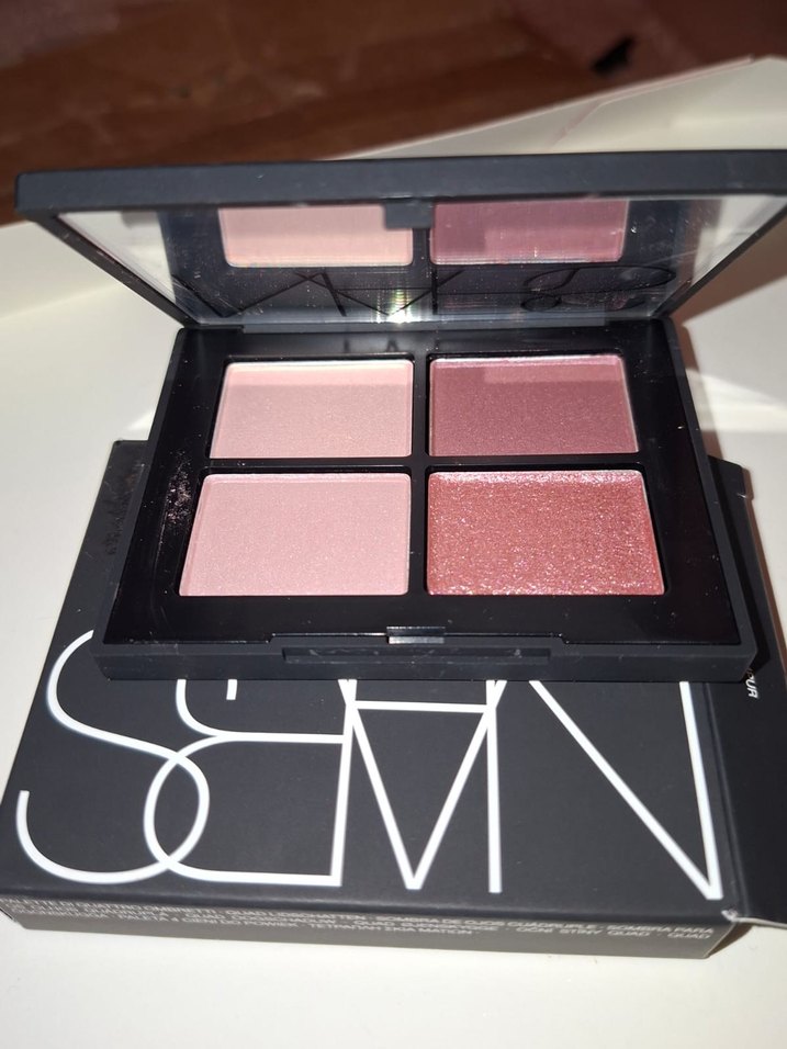 NARS göz farı paleti, yumuşak ve koyu pembe tonlarında dört renkten oluşur, çeşitli göz makyajları için uygundur.