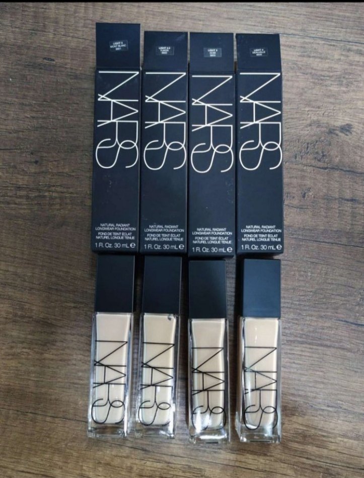 NARS sıvı fondöten, 30 ml şişelerde bej tonlarında. Doğal görünüm için pürüzsüz kapatıcılık sağlar. Koyu tenlere uygundur.