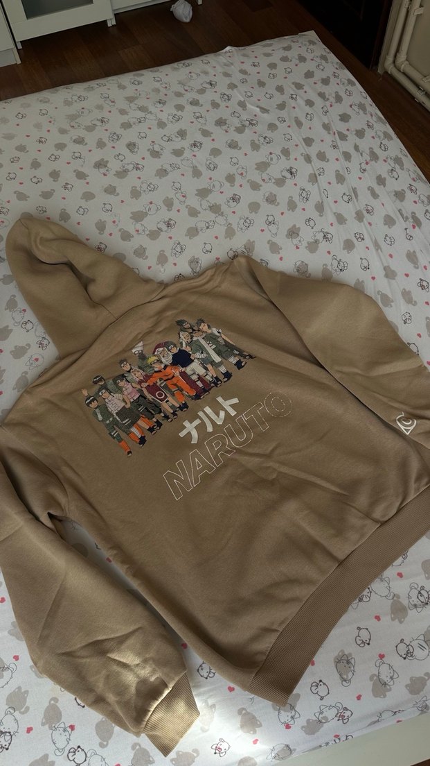 Orijinal pull and bear Naruto anime desenli sweatshirt . Temizdir fotoğrafları gibidir. Bej renkli, uzun kollu, baskılı Naruto desenli, bol kesim, bisiklet yaka ve düğmeli detaylara sahip sweatshirt. Yumuşak ve sıcak kumaştan üretilmiştir.