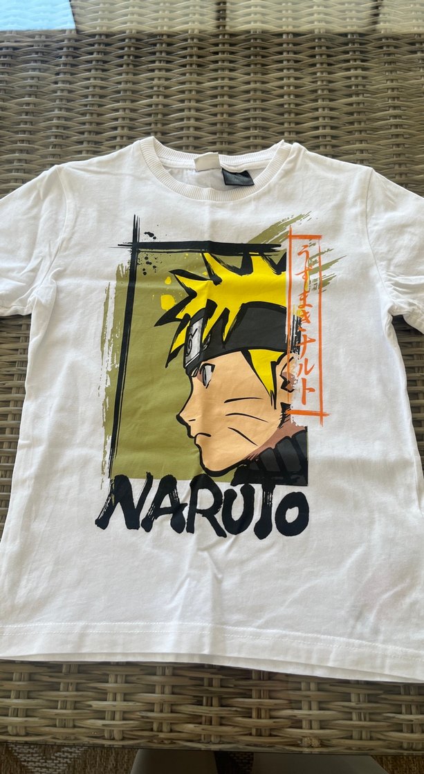 Pamuklu, beyaz renkli, kısa kollu ve bisiklet yaka erkek çocuk tişörtü. Önünde Naruto baskısı bulunur. 7/8 yaş