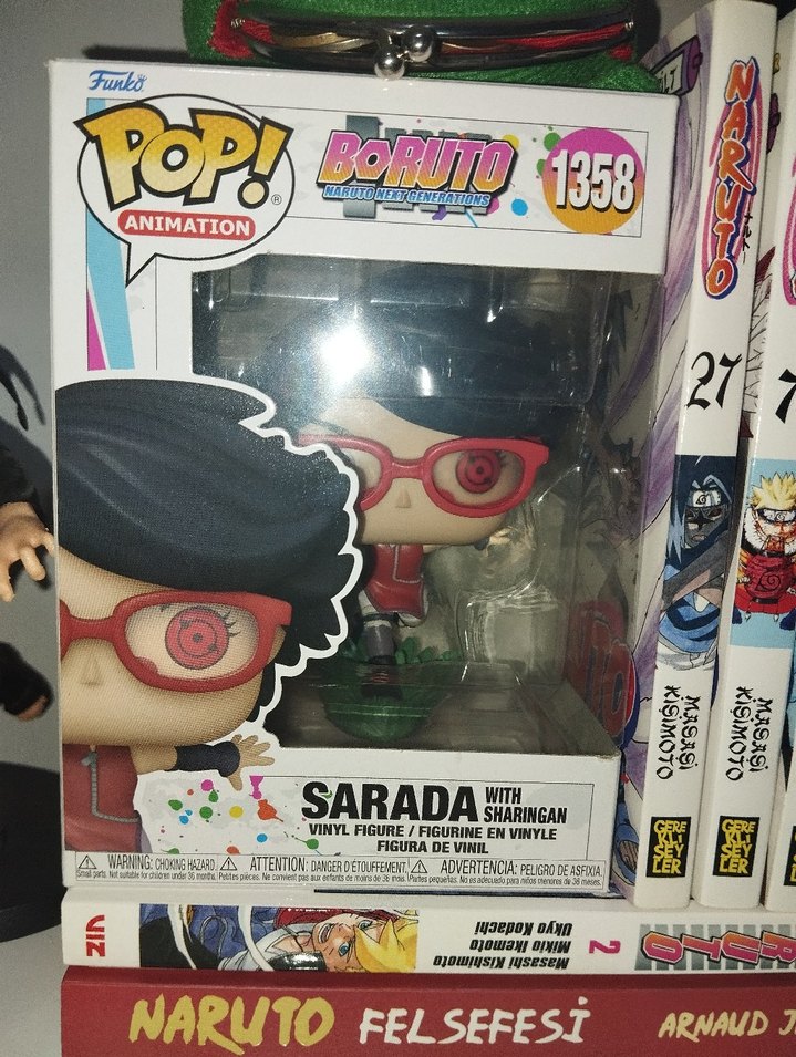 Naruto Boruto serisinden Sarada figürü, Sharingan göz detayıyla vinil malzemeden yapılmıştır. 1358 numaralı kutuda bulunur. Funko pop figürü