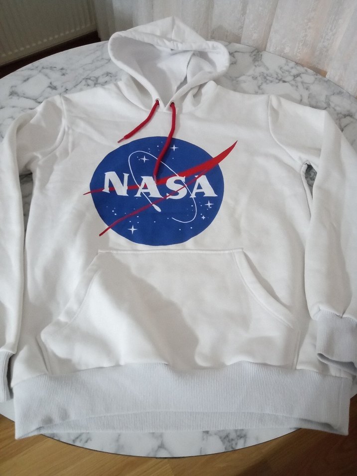 NASA Baskılı Beyaz Kapüşonlu Sweatshirt S/M uyumlu