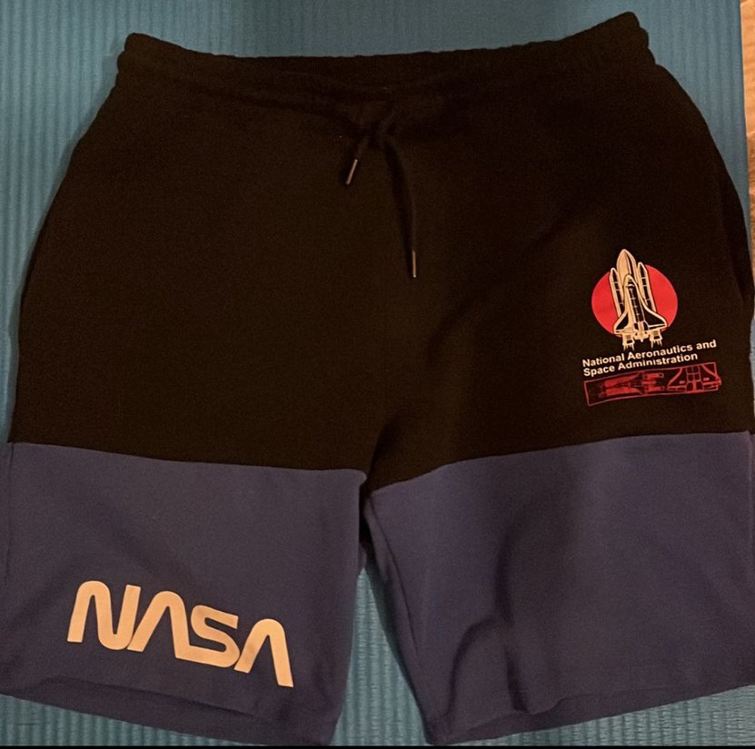 Yumuşak fleece kumaştan, baskılı NASA logolu ve siyah erkek şort, dış mekan ve sokak stili için uygundur.