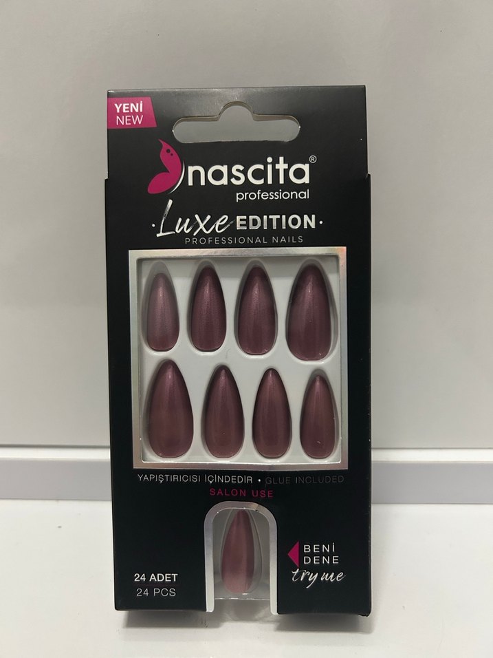 Nascita profesyonel bordo tırnak süsü, yapıştırıcılı 24 adet pakette sunulur.