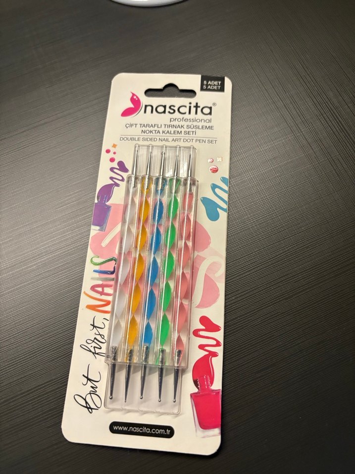 Nascita marka, altı adet pastel renkli çift taraflı nokta kalem seti. Tırnak süslemede detaylı tasarımlar için uygundur.