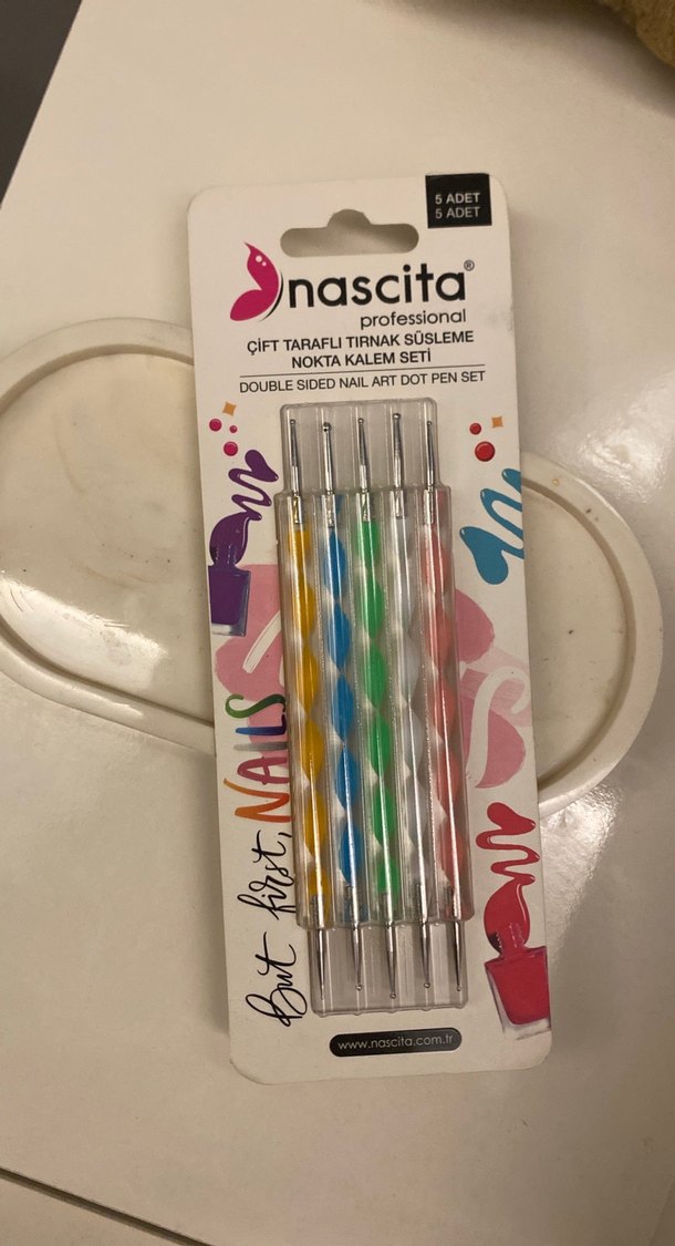 Nascita marka, pastel renklerde 5 adet çift taraflı tırnak süsleme nokta kalemi seti.