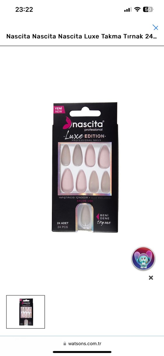 Nascita Luxe Edition markasına ait, doğal görünümlü, açık bej renkte 24 adet takma tırnak seti.