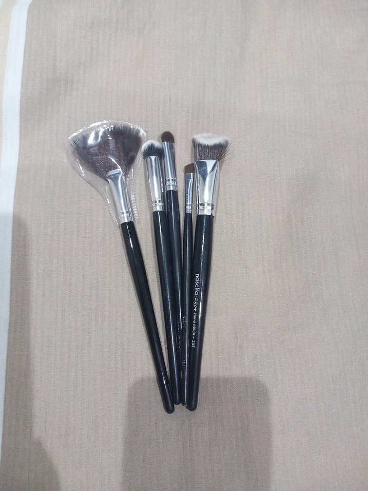 Farklı boyut ve şekillerde beş siyah makyaj fırçası seti, çeşitli makyaj uygulamalarına uygundur. ️ aydınlatıcı fırçası sıfır diğerleri kullanılmıştır. fondöten fırçası allık kapatıcı kontür sürmek için de çok kullanışlı